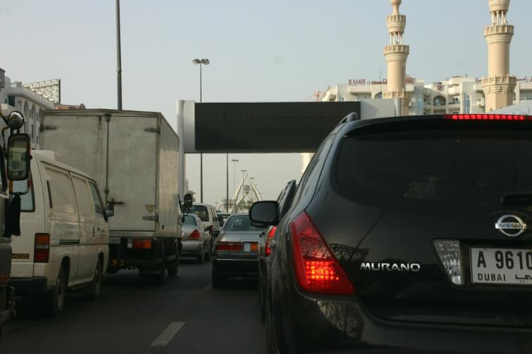 Verkehrsknotenpunkt Nummer 1 in Dubai Clock-Roundabout ! Dauerstau ! Gewohnheitssache in Dubai !
