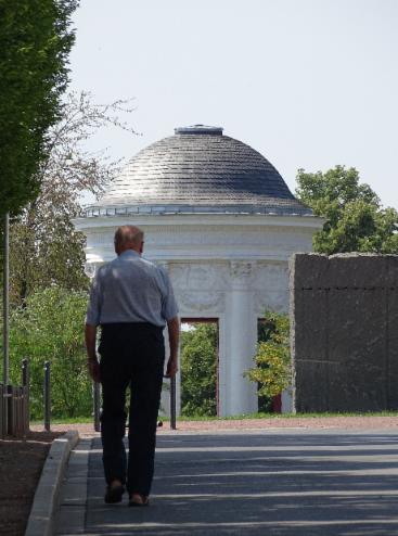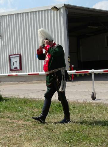 Der Rentner im Schatten Rentner in historischer Offiziersuniform