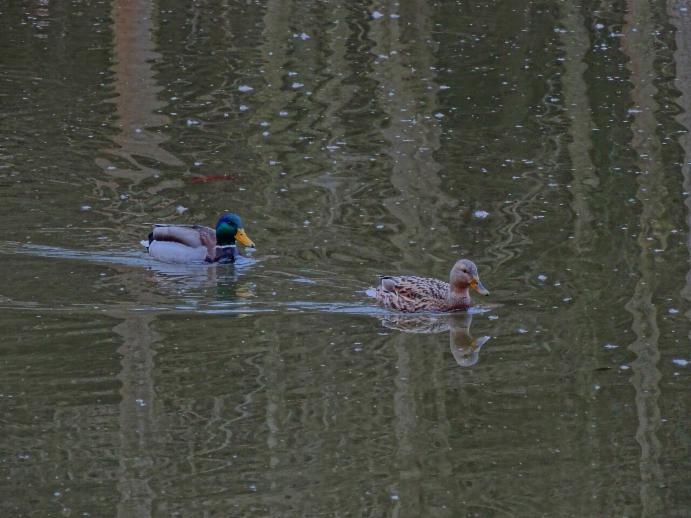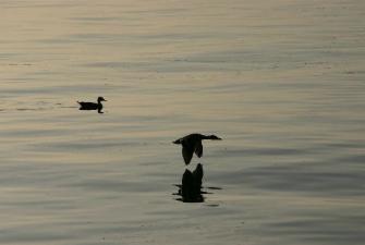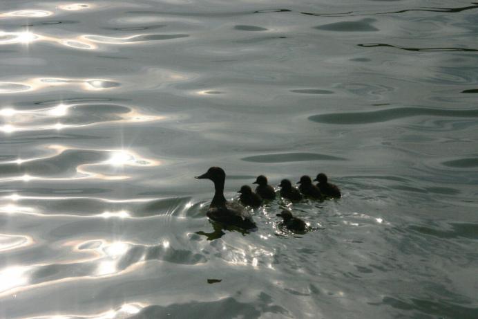 Entenfamilie zwischen Licht und Schatten ( Licht- und Schatten- Spiegelung)